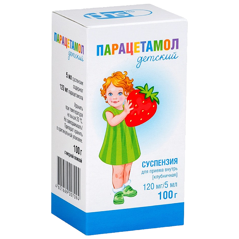 Парацетамол детский суспензия для приема внутрь флакон 120 мг/5 мл фл.100 г Клубника