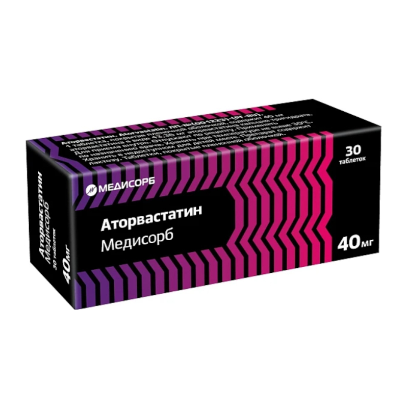 Смотреть все аналогиАторвастатин Медисорб 40 мг таблетки покрытые пленочной оболочкой 30 шт