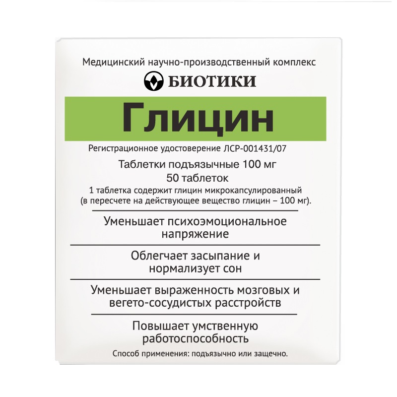 Глицин 100 мг таблетки подъязычные 50 шт Биотики МНПК