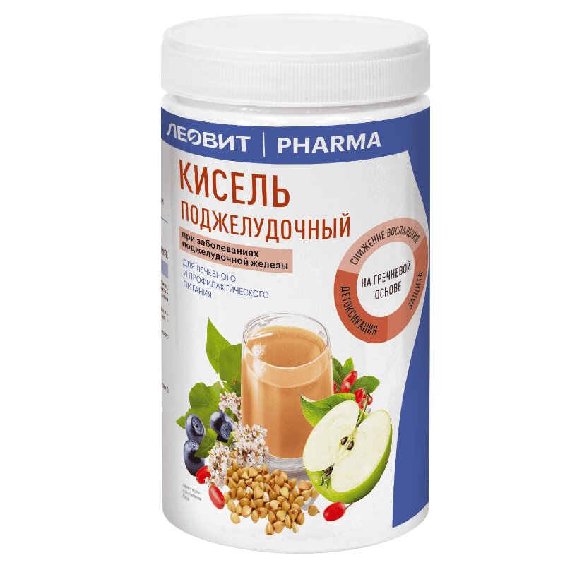 Описание Кисель Поджелудочный это специализированный пищевой продукт диетического профилактического питания. Кисель ЛЕОВИТ применяется в качестве диетотерапии в комплексной терапии при хронических заболеваниях поджелудочной железы в стадии обострения. Напиток оказывает благоприятное воздействие на функцию поджелудочной железы, способствуют уменьшению воспалительных процессов поджелудочной железы, снижает риск обострения хронического панкреатита и эффективен для коррекции питания при хроническом панкреатите. Употребление напитка снижает отек поджелудочной железы, ускоряет процессы регенерации поврежденных тканей поджелудочной железы, способствуют восстановлению ферментативной активности, устраняет тошноту, отрыжку, чувство горечи, метеоризм, уменьшает болевые проявления в кишечнике, нормализует консистенцию стула, улучшает аппетит и общее состояние. Кисель повышает эффективность базовой терапии и приводит к длительной стойкой ремиссии заболевания и рекомендован в виде монотерапии или в комплексной терапии с противовоспалительными препаратами. Достоинством напитка является его натуральный состав, основанный на лекарственных травах. Продукт имеет клинически подтвержденную эффективность. Корень лопуха - связывает и выводит из организма токсины, оказывает противовоспалительное действие, улучшает синтез инсулина поджелудочной железой. Девясил – обладает противовоспалительным, болеутоляющим действием, стимулирует общий обмен веществ. Тмин – ускоряет регенерацию поджелудочной железы, оказывает обезболивающее, спазмолитическое действие. Полезный и вкусный напиток не требует готовки, нужно залить горячей водой и подождать 1-3 минуты. Действие -Нормализует функцию поджелудочной железы -Уменьшает воспаление и отек -Ускоряет процессы регенерации -Способствует восстановлению уровня ферментов -Устраняет диспепсические явления -Уменьшает боль -Улучшает аппетит Показания В качестве специализированного пищевого продукта для диетического лечебного и профилактического питания при хронических заболеваниях поджелудочной железы