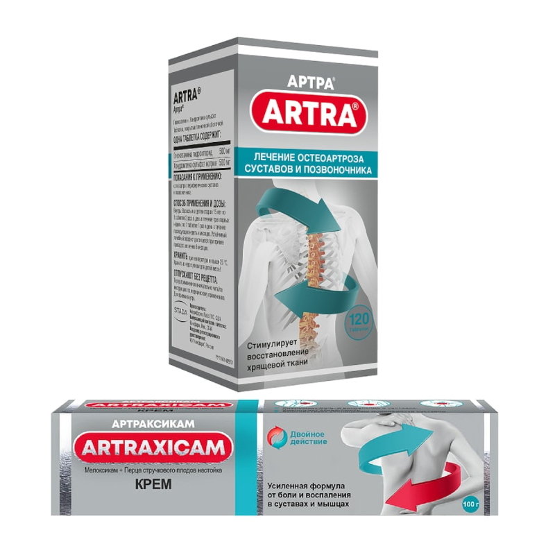 Смотреть все аналогиНабор Артраксикам 30 мг/г+100 мг/г крем для наружного применения 100 г + Артра 500 мг+500 мг таблетки покрытые пленочной оболочкой 120 шт