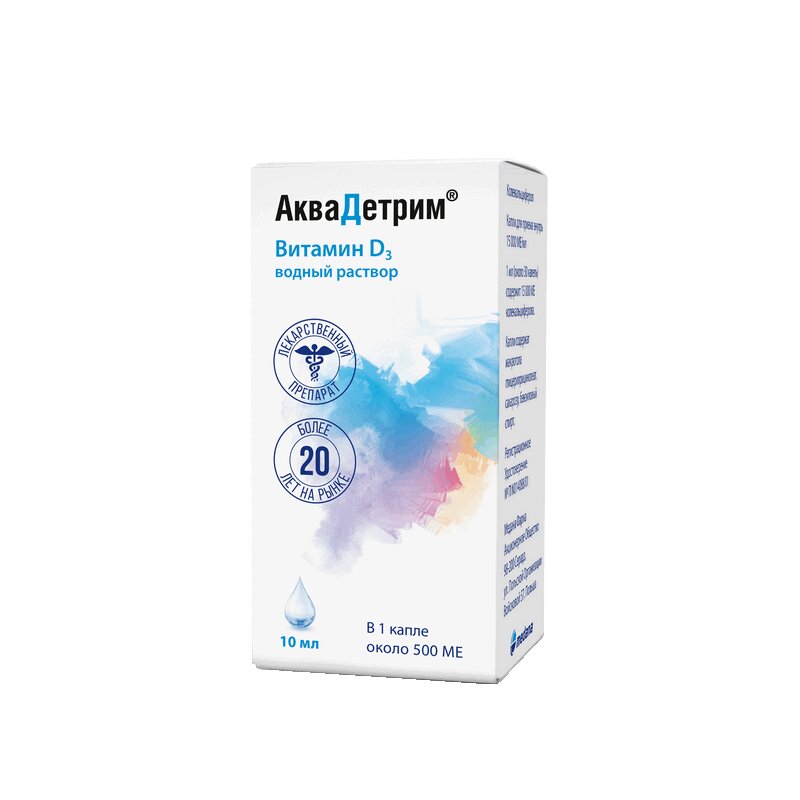 Инструкция по применению АкваДетрим Витамин Д3 15000 МЕ/мл капли капли для приема внутрь 10 мл