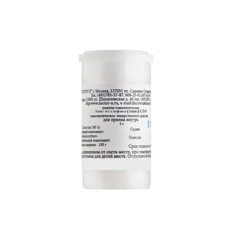 Инструкция по применению Апис меллифика С30 гранулы гомеопатические 5 г