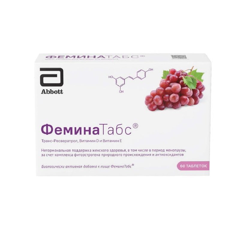 Феминатабс специально разработанная для женщин биологически активная добавка к пище, представляет собой комбинацию транс-ревератрола, витаминов E и D для негормональной поддержки женского здоровья, в том числе в период менопаузы.