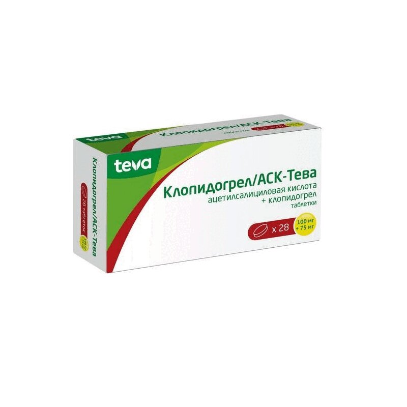 Инструкция по применению Клопидогрел/АСК-Тева таблетки 100 мг+75 мг 28 шт
