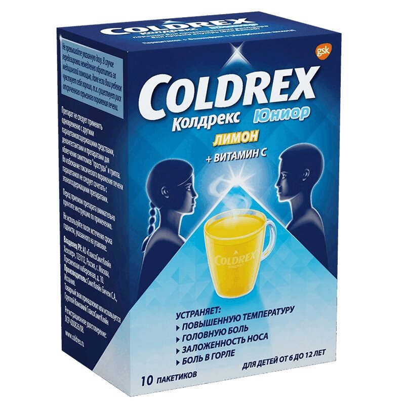 Инструкция по применению Колдрекс Юниор порошок для приготовления раствора Лимон 10 шт