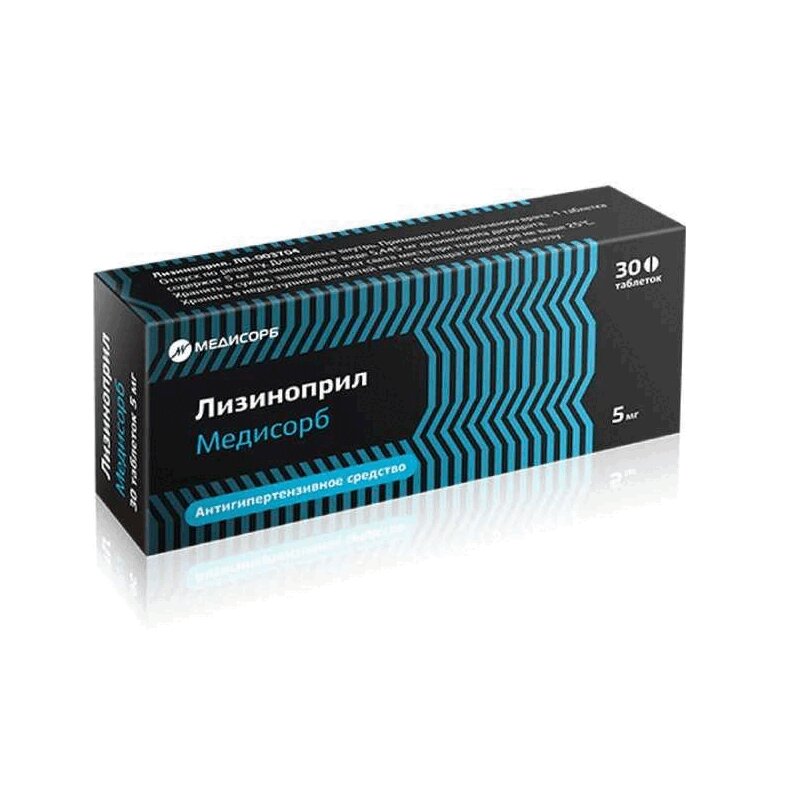 Инструкция по применению Лизиноприл Медисорб 5 мг таблетки 30 шт