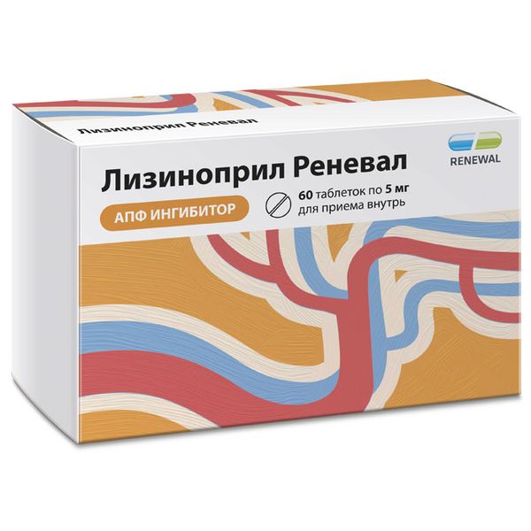 Лизиноприл Реневал таблетки упаковка контурная 5 мг 60 шт