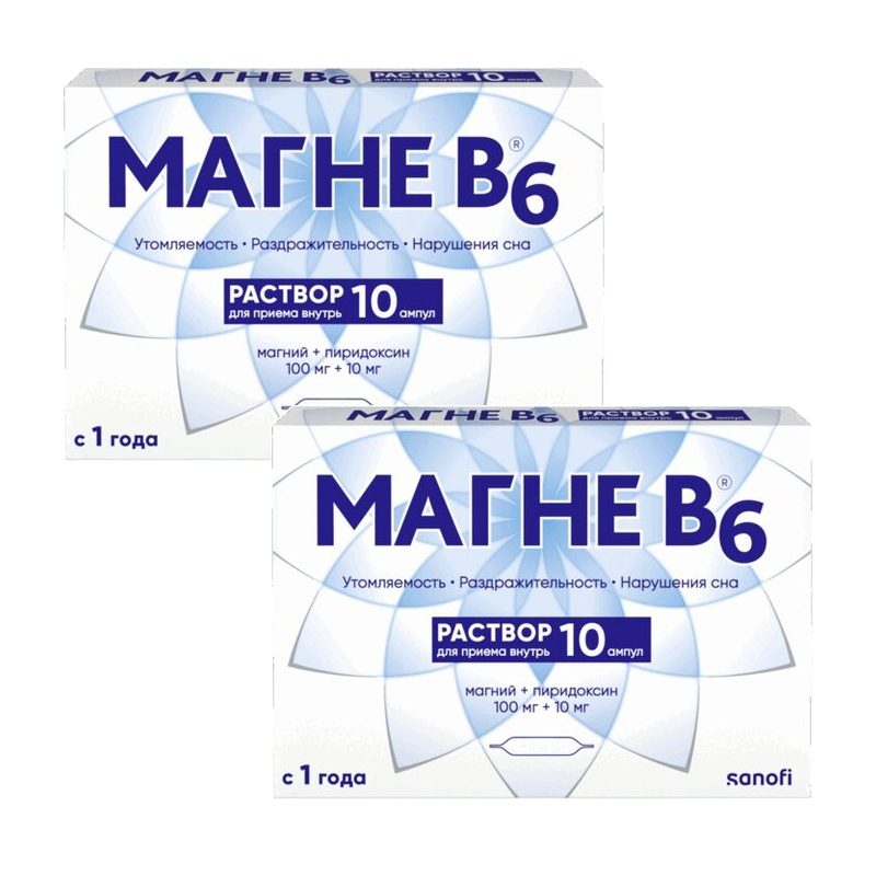 Инструкция по применению Набор 2Х Магне B6 100 мг+10 мг раствор для приема внутрь 10 мл 10 шт