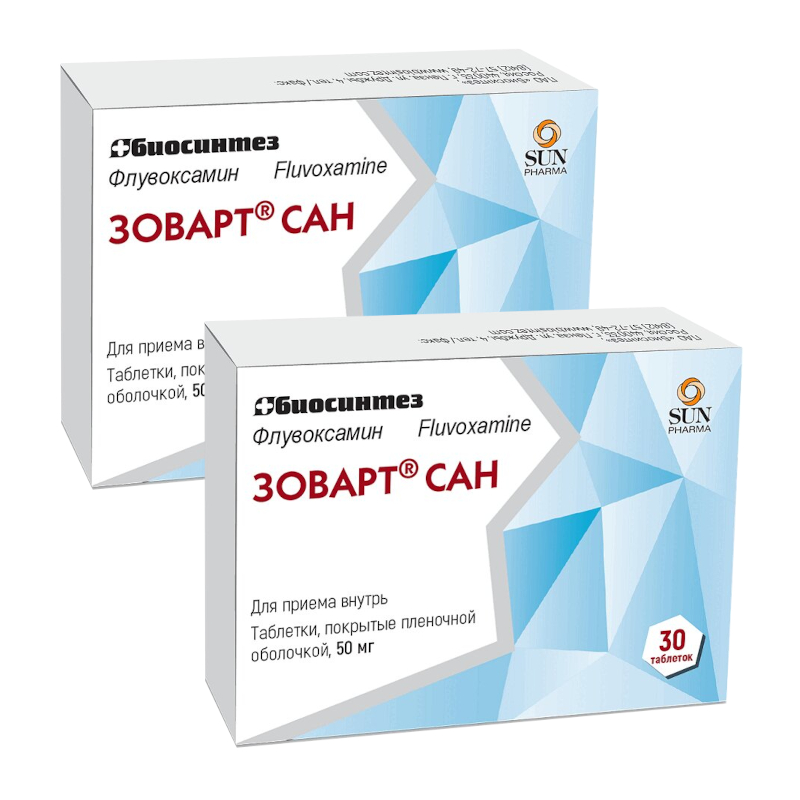 Флувоксамин избирательно повышает активность серотонина в клетках головного мозга (нейронах). Как и у других антидепрессантов, действие препарата ЗОВАРТ® САН наступает не сразу, у некоторых пациентов для появления терапевтического эффекта может потребоваться 2-3 недели. Препарат применяют для лечения депрессии различного происхождения у взрослых. ЗОВАРТ® САН также может применяться у пациентов с обсессивно-компульсивным расстройством (у взрослых, а также у подростков и детей с 8 лет).