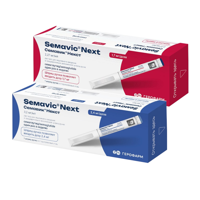 Набор Семавик Некст 1,7 мг/доза раствор для подкожного введения шприц-ручка 3 мл + Семавик Некст 2,4 мг/доза раствор для подкожного введения шприц-ручка 3 мл
