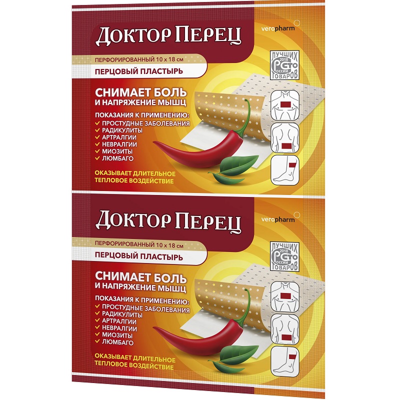 Перцовый пластырь Доктор Перец предназначен для использования в качестве местнораздражающего и отвлекающего средства при радикулитах, миозитах, невралгиях, люмбаго, артралгии (болях в суставах), простудных заболеваниях.