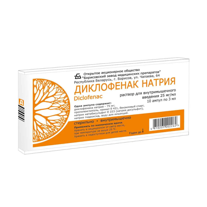 Инструкция по применению Диклофенак 25 мг/мл раствор для инъекций 3 мл 10 шт