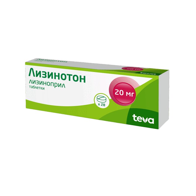 Инструкция по применению Лизинотон 20 мг таблетки 28 шт