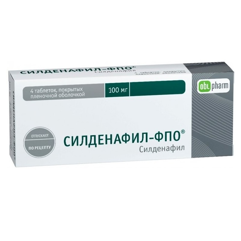 Силденафил-ФПО таблетки покрытые пленочной оболочкой упаковка контурная 100 мг 4 шт