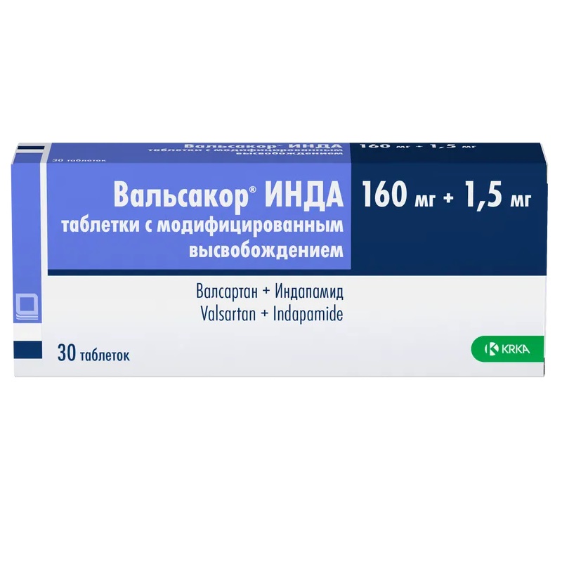 Вальсакор ИНДА 160 мг+1,5 мг таблетки с модифицированным высвобождением 30 шт