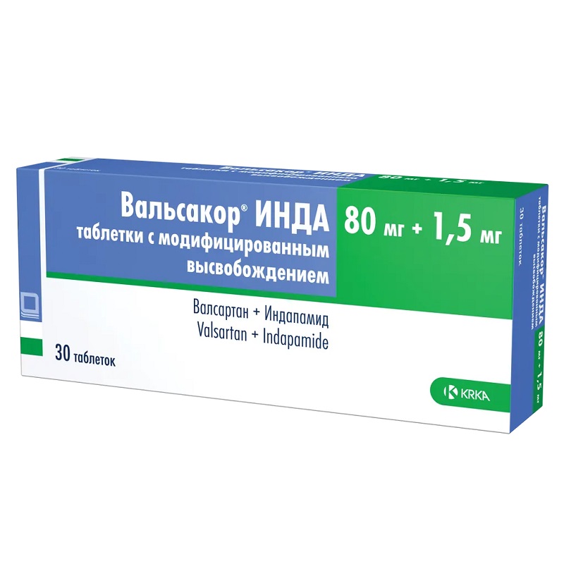 Вальсакор ИНДА 80 мг+1,5 мг таблетки с модифицированным высвобождением 30 шт