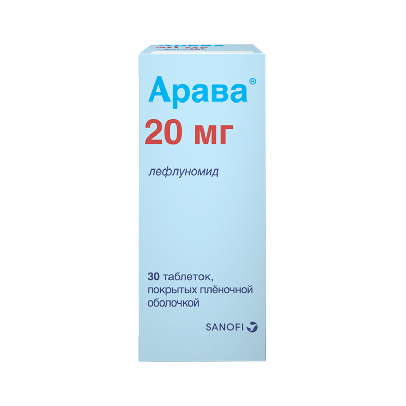 Арава таблетки покрытые пленочной оболочкой флакон (флакончик) полиэтиленовый 20 мг 30 шт