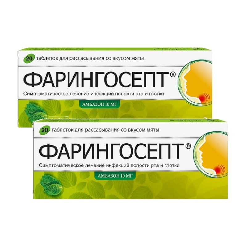 Смотреть все аналогиНабор 2Х Фарингосепт 10 мг таблетки для рассасывания Мята 20 шт