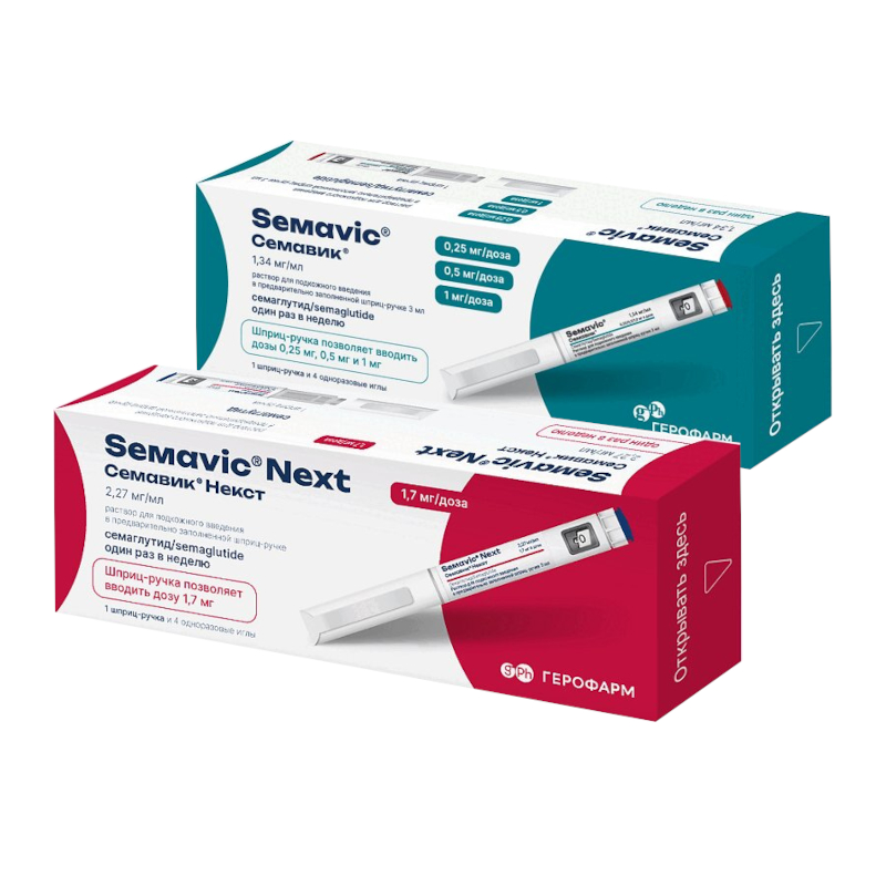 Набор Семавик 0,25/0,5/1 мг/доза раствор для подкожного введения шприц-ручка 3 мл + Семавик Некст 1,7 мг/доза раствор для подкожного введения шприц-ручка 3 мл