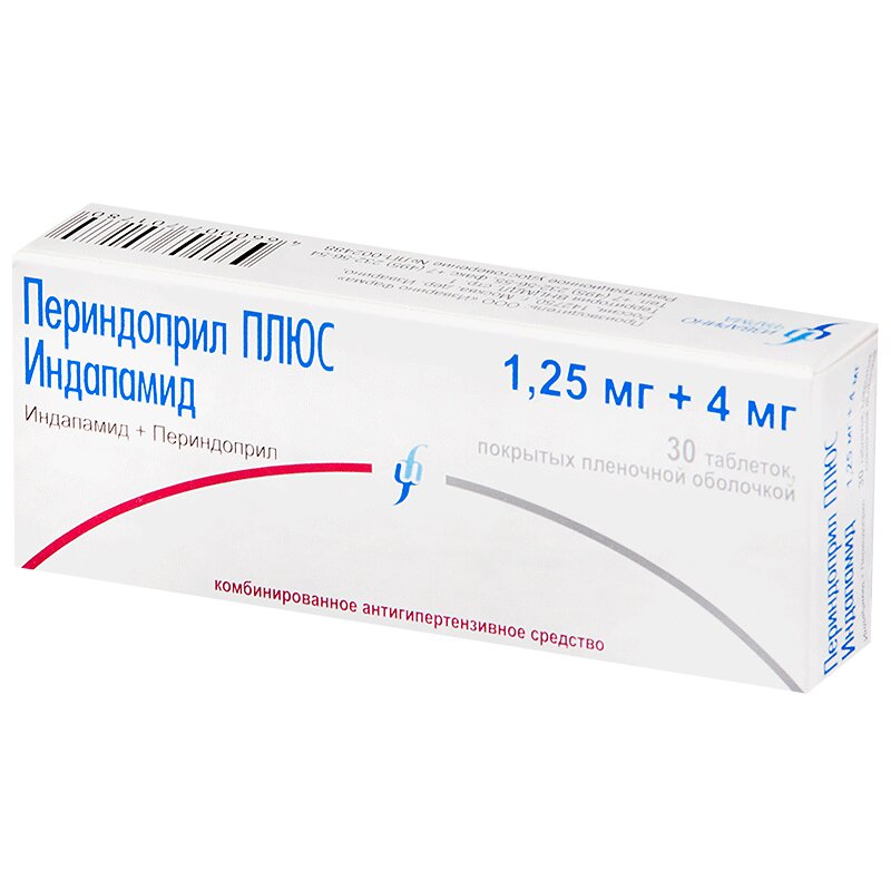 Инструкция по применению Периндоприл ПЛЮС Индапамид 1,25 мг+4 мг таблетки 30 шт