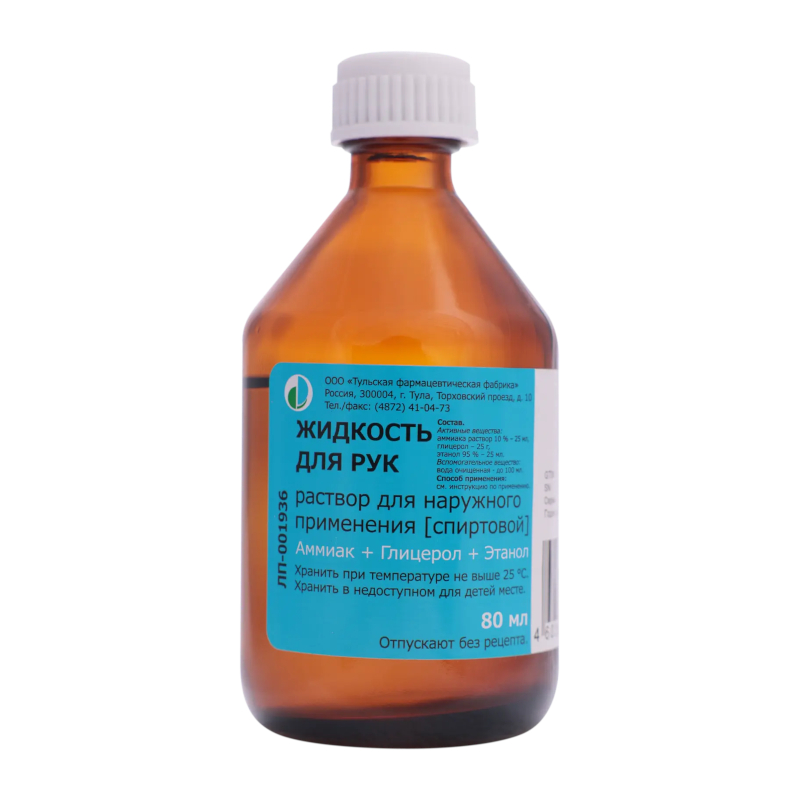Жидкость для рук раствор спиртовой для наружного применения 80 мл 1 шт Тульская фармацевтическая фабрика