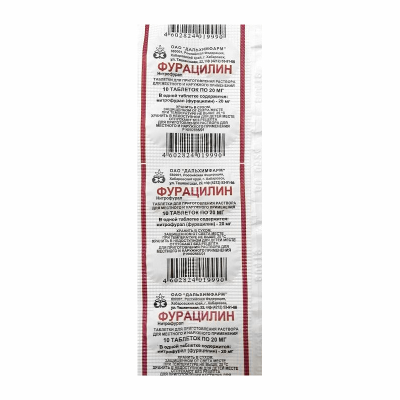 Смотреть все аналогиФурацилин 20 мг таблетки для приготовления раствора для местного и наружного применения 10 шт Дальхимфарм в Вологде