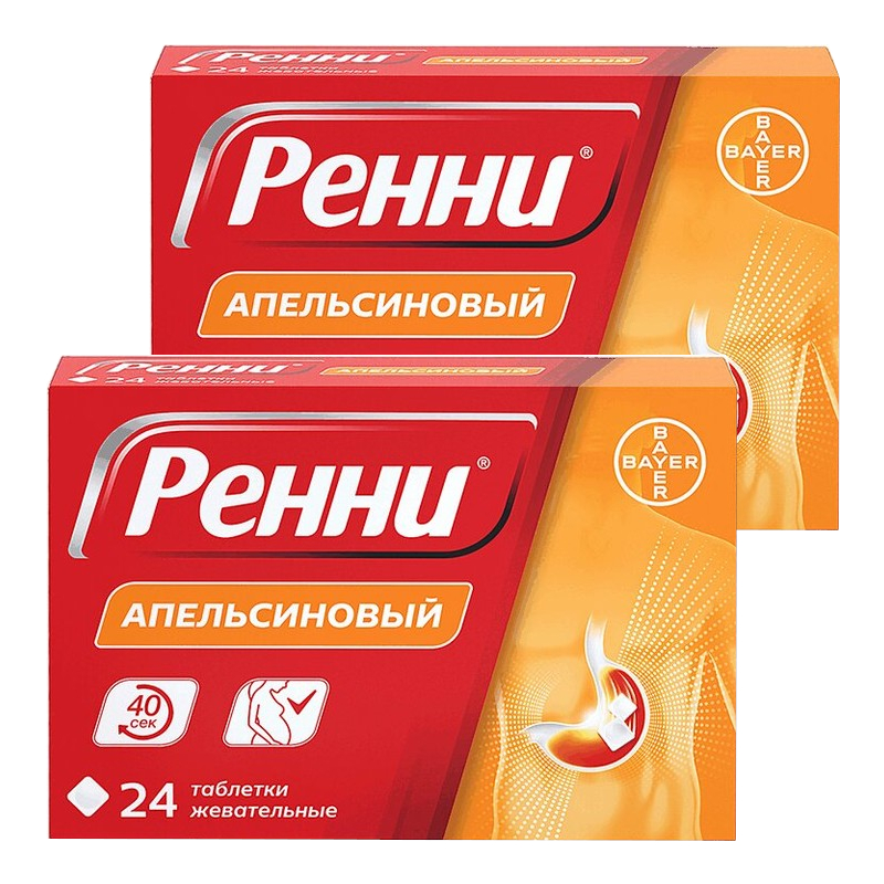 Набор 2Х Ренни 680 мг+80 мг таблетки жевательные Апельсин 24 шт в Вологде